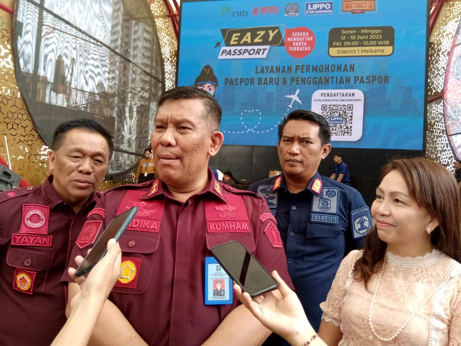 LAMPUNG.GERBANGPATRIOT.COM – Bekasi, lmigrasi Bekasi Layani 2000 Pemohon Paspor Kolektif di Meikarta Pada hari ini Sabtu, 17 Juni 2023 Kantor Imigrasi Kelas 1 Non TPI Bekasi bekerjasama dengan Lippo Group melaksanakan kegiatan program jemput bola (Eazy Passport) di District 1 Meikarta, Cikarang, Jawa Barat yang diselenggarakan dari tanggal 12 – 18 Juni 2023 dengan kuota terbanyak se Indonesia.
