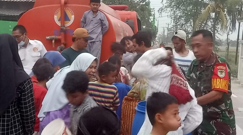 LAMPUNG.GERBANGPATRIOT.COM – Serang, Akibat terjadinya fenomena El Nino, sehingga menyebabkan musim kemarau. Karena itu, Bintara Pembina Desa (Babinsa) Koramil 0602-10/Pontang Kodim 0602/Serang Sersan Mayor (Serma) Edi Santoso, membantu Badan Penanggulangan Bencana Daerah (BPBD) Provinsi Banten, memberikan bantuan air bersih kepada warga yang kesulitan mendapatkan pasokan air bersih, bertempat di Kampung Bayongbong Desa Linduk Kecamatan Pontang Kabupaten Serang Provinsi Banten, Jum’at (15/09/2023).