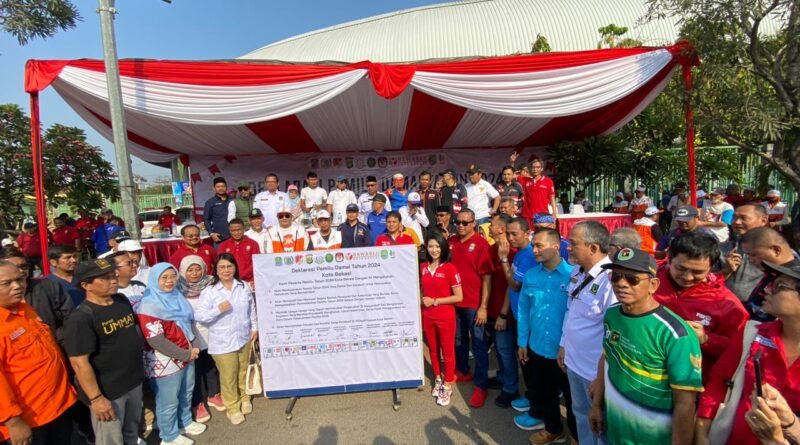 LAMPUNG.GERBANGPATRIOT.COM – Kota Bekasi, Menuju Pemilihan Umum (Pemilu) Tahun 2024, Wali Kota Bekasi, Tri Adhianto bersama unsur Forkopimda, Komisi Pemilihan Umum (KPU), Badan Pengawas Pemilu (Bawaslu), Forum Kerukunan Umat Beragama (FKUB), dan juga seluruh Ketua Dewan Pimpinan Partai Politik Cabang (DPC) Kota Bekasi, tandatangani Deklarasi Pemilu Damai pada Minggu (17/09) bertepatan dengan pelaksanaan Car Free Day di ruas Jl. A. Yani, Bekasi Selatan.