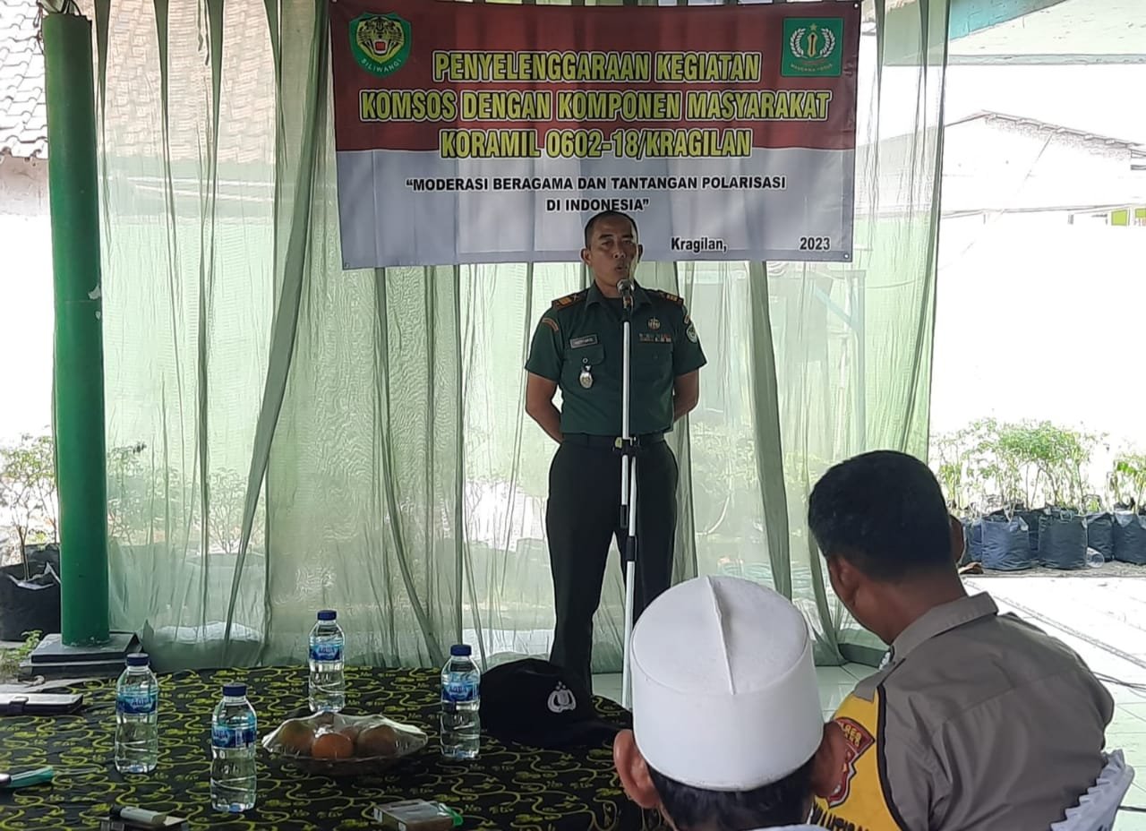 Lebih lanjut, Kapten Inf Hariyanto menjelaskan tema kegiatan komsos yang dilaksanakan tersebut, yaitu moderasi beragama dan tantangan polarisasi di Indonesia. Melalui kegiatan ini diharapkan akan membentuk karakter dan semangat juang yang tinggi, untuk bersama-sama menjaga bangsa dan negara dari segala bentuk ancaman.
