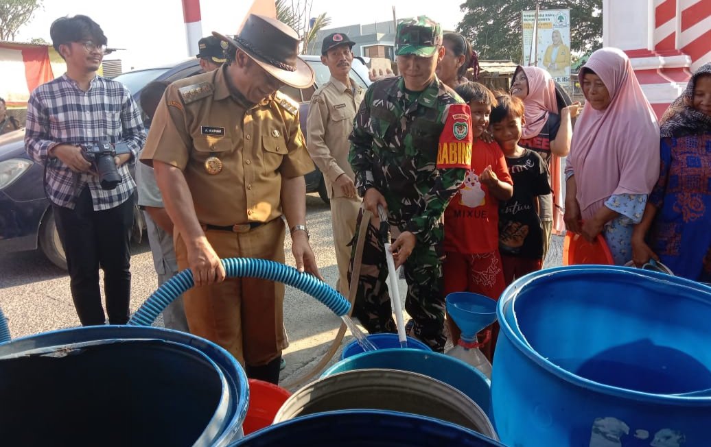 Danramil 0602-11/Tirtayasa Kapten Kav Baskara menjelaskan bantuan air bersih tersebut, diberikan kepada masyarakat yang mengalami kekeringan, yang disebabkan kemarau akibat dampak fenomena El Nino, bertempat di Kampung Pesisir Desa Pedalaman Kecamatan Tanara Kabupaten Serang Provinsi Banten, Senin Kemarin (25/09/2023).