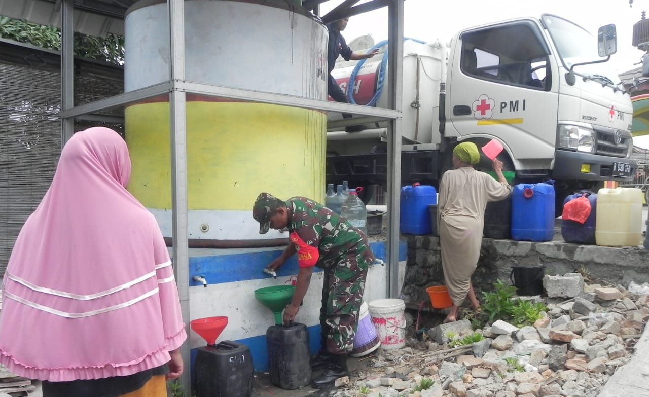 Babinsa Koramil 0602-02/Kasemen menyampaikan bantuan air bersih yang diberikan, bekerjasama dengan PMI Kota Serang. Untuk mengatasi kesulitan masyarakat yang terdampak Kekeringan, karena terjadi kemarau panjang dampak El Nino. Saat ini masyarakat memang kesulitan mendapatkan air bersih, akibat dampak cuaca ekstrim tersebut.
