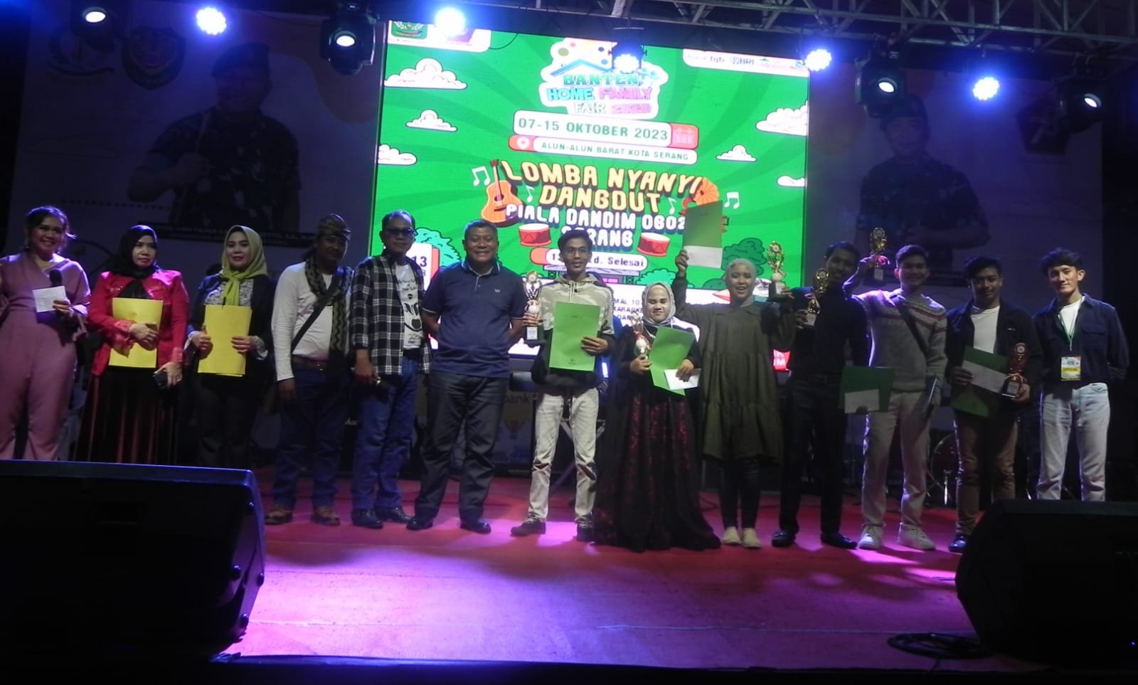 LAMPUNG.GERBANGPATRIOT.COM – Kota Serang, Komandan Kodim (Dandim) 0602/Serang Kolonel Arm Fajar Catur Prasetyo, S.E., M.M menyerahkan piala dan hadiah, kepada para pemenang lomba nyanyi dangdut Piala Dandim 0602/Serang, dalam rangkaian kegiatan Family Home Fair Tahun 2023 memperingati HUT TNI Ke 78, bertempat di Alun Alun Kota Serang Provinsi Banten, Jum’at Malam (13/10/2023).