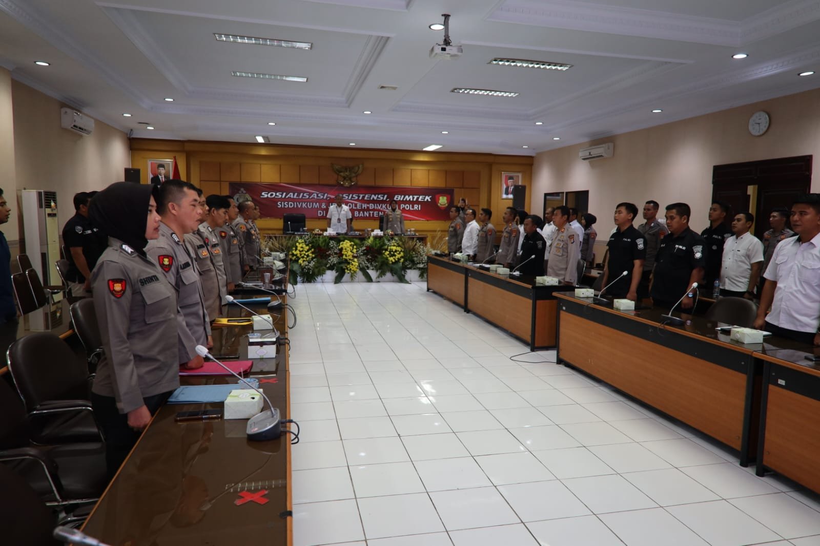 Kegiatan dihadiri oleh Kabag Dokinfokum Polri Kombes Pol Widiatmono, S.H., M.H, selaku Kepala Tim Asistensi Divkum Polri didampingi Kabidkum Polda Banten Kombes Pol Yuliani, S.H., M.M, serta diikuti oleh seluruh personel Polda Banten dan Polres/ta jajaran.