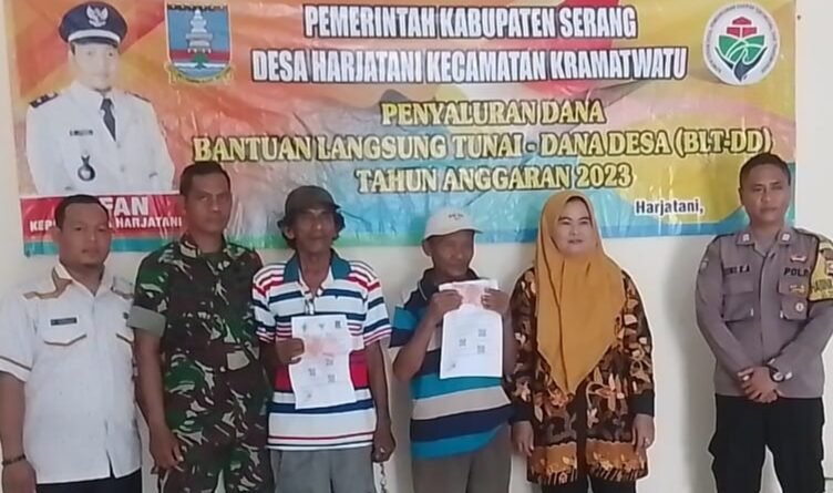 LAMPUNG.GERBANGPATRIOT.COM – Serang, Untuk memastikan tepat sasaran dan berjalan aman serta lancar, Sersan Kepala (Serka) Iwan S Bintara Pembina Desa (Babinsa) Koramil 0602-06/Kramatwatu Kodim 0602/Serang, memantau penyaluran Bantuan Langsung Tunai (BLT) Dana Desa Tahun 2023, bertempat di Kantor Desa Harjatani Kecamatan Kramatwatu Kabupaten Serang Provinsi Banten, Kamis (26/10/2023).