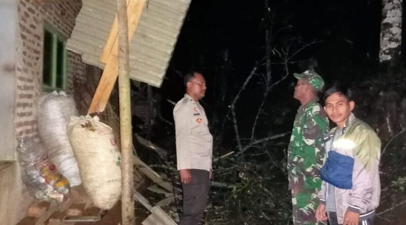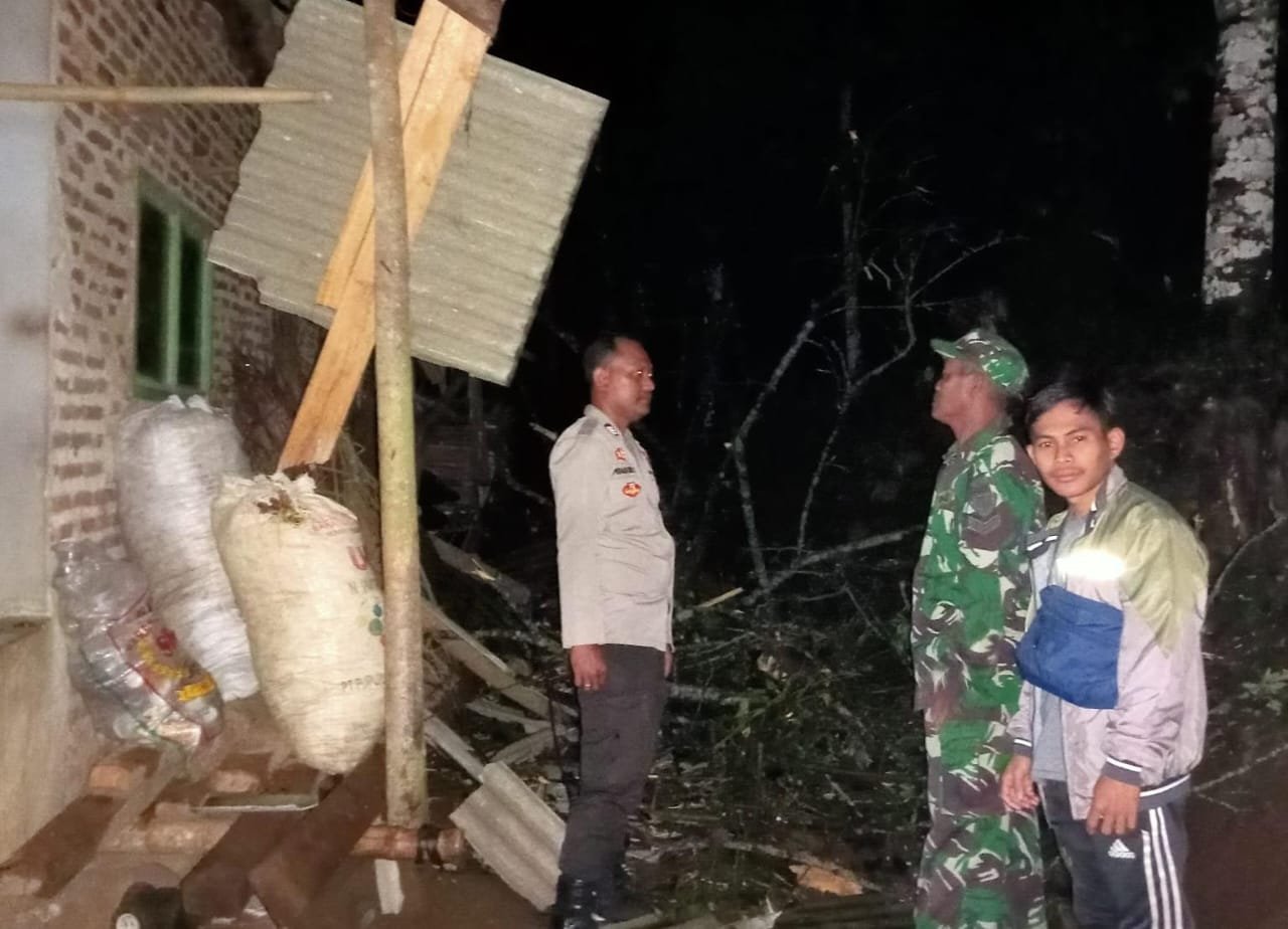 Rumah Warga Rusak Tertimpa Pohon, Babinsa Koramil 0112/Jiput Datangi Tempat Kejadian