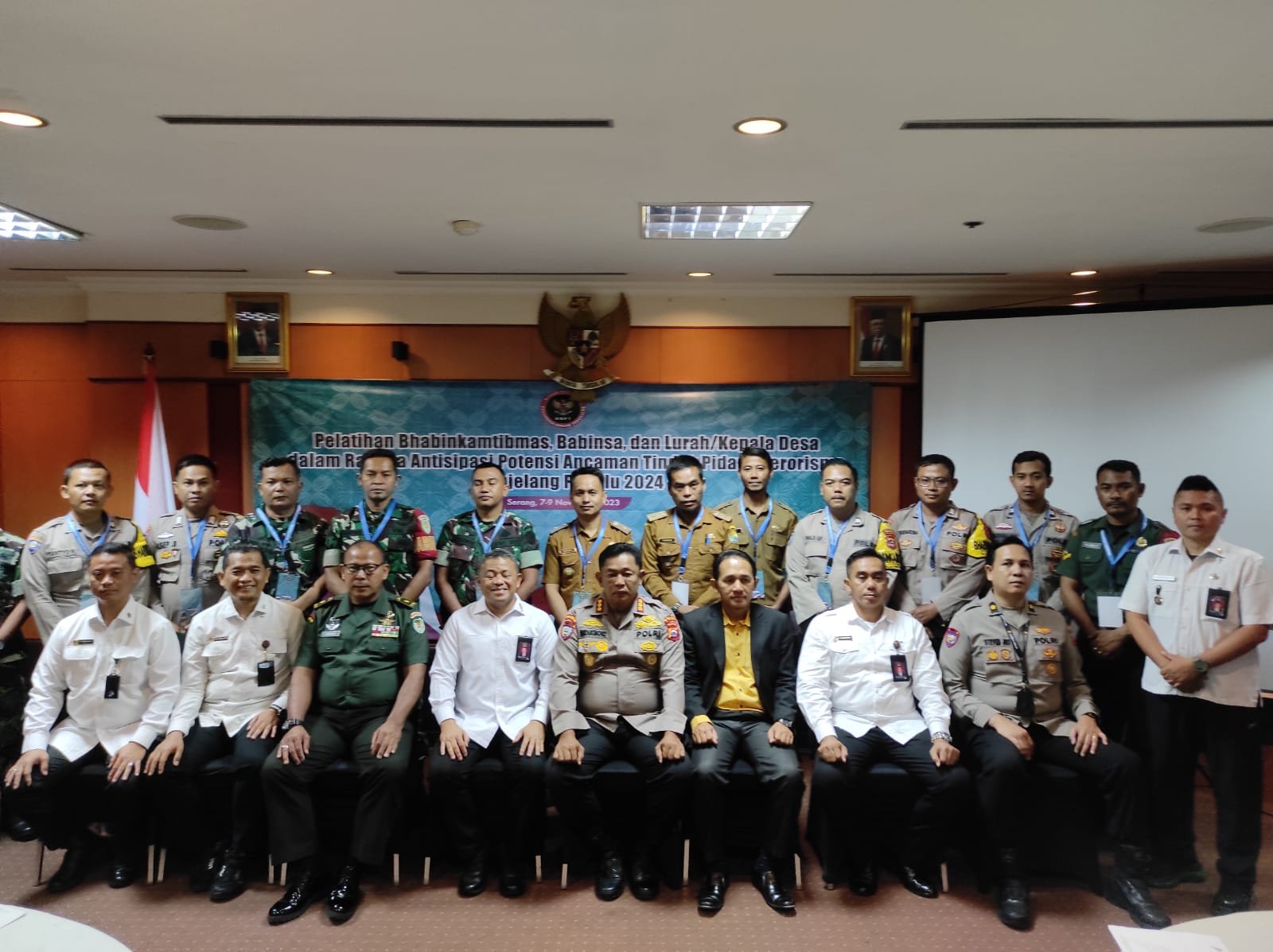 LAMPUNG.GERBANGPATRIOT.COM – Serang, Polda Banten hadiri kegiatan yang diselenggarakan Badan Nasional Penanggulangan Terorisme (BNPT) guna memberikan pelatihan kepada Bhayangkara Pembina Keamanan dan Ketertiban Masyarakat (Bhabinkamtibmas), Bintara Pembina Desa (Babinsa) dan Lurah dalam rangka antisipasi potensi ancaman tindak pidana terorisme menjelang pemilu 2024 bertempat di Hotel Le Dian pada Selasa (07/11).