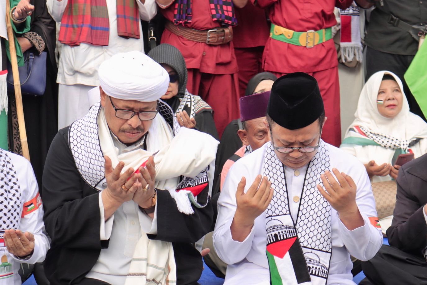 “Saya berdiri melebur dan menjadi bagian dari saudara-saudaraku sebangsa dan setanah air, berdiri disini untuk merasakan bersama penderitaan saudara-saudara kita di Palestina, berdiri untuk menyuarakan kemerdekaan,” ucap Gani Muhamad dalam seruannya.