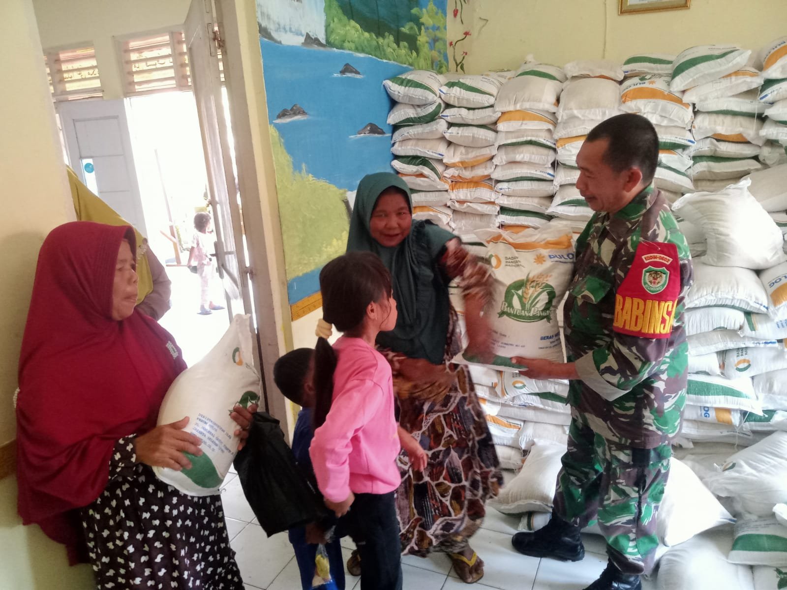 Babinsa Koramil 0602-15/Baros Pantau Penyaluran Bantuan Beras Dari BPN
