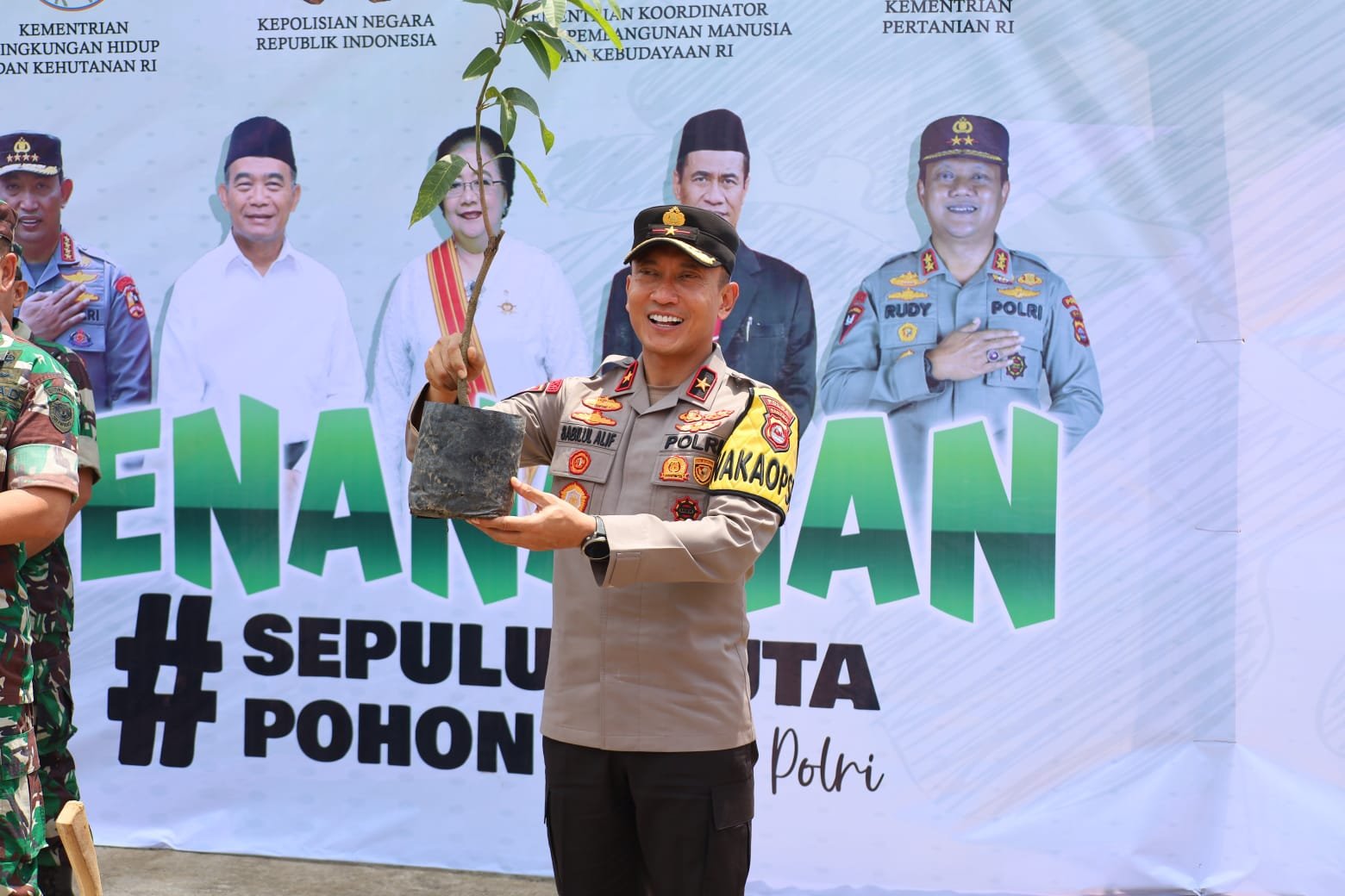 Dalam kegiatan ini Polda Banten beserta jajaran Polres dan Polsek melakukan penanaman sebanyak 11.000 pohon yang berlokasi di 14 tempat.