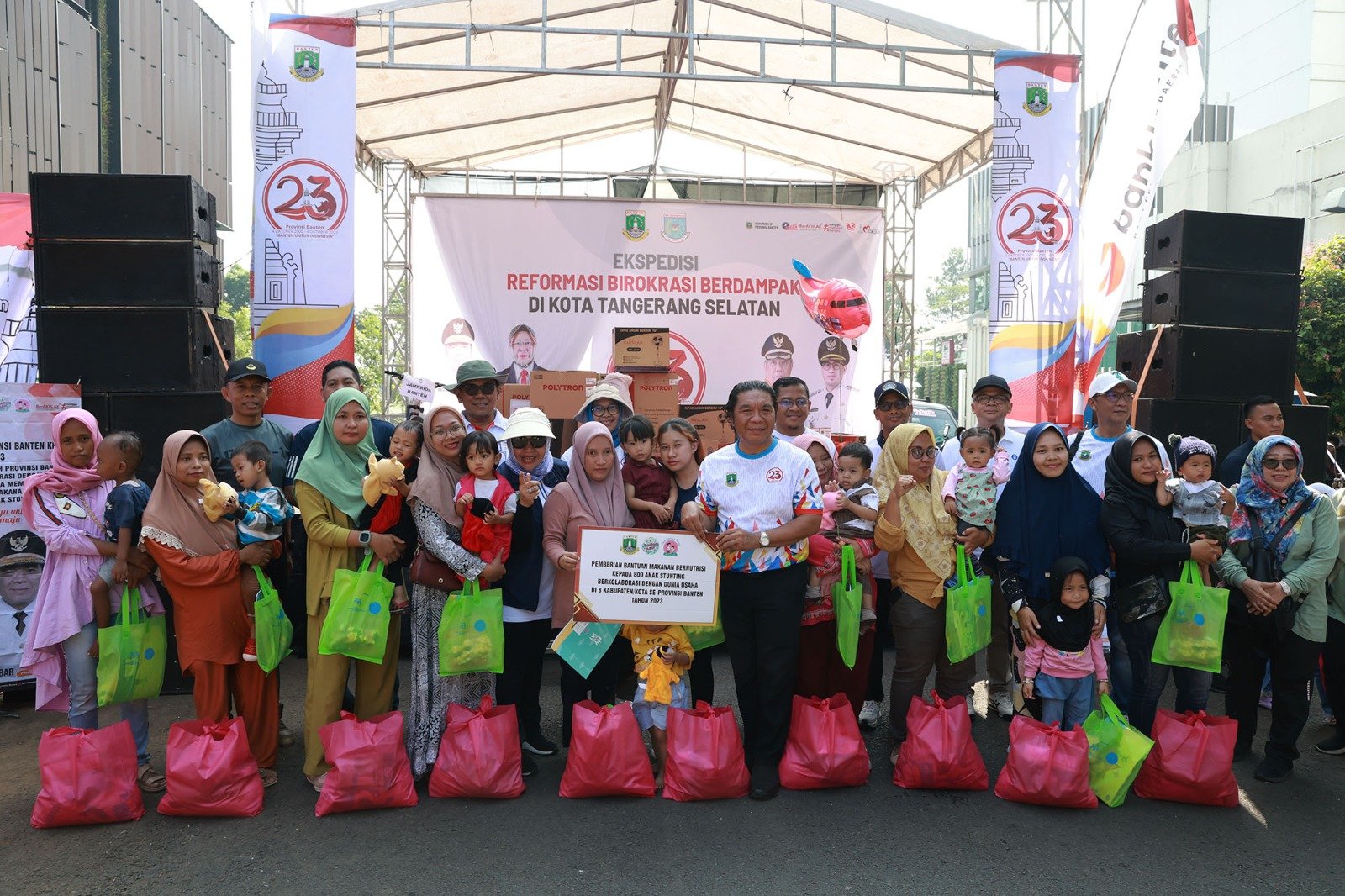 Pada kesempatan itu, Pemprov Banten juga menyerahkan bantuan untuk 100 anak rawan stunting, berupa paket makanan bernutrisi yang terdiri dari paket beras, telur, minyak goreng, susu dan biskuit.