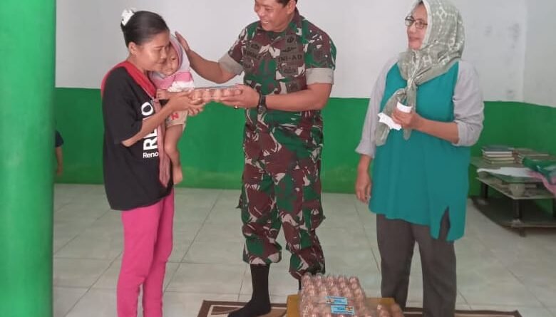 Cegah Stunting, Sertu Herman Babinsa Koramil 0602-01/Kota Serang Berikan Bantuan Telur