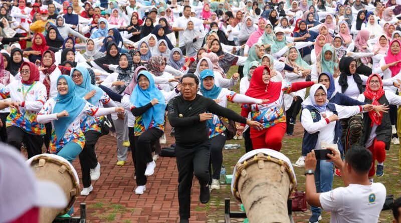 Pj Gubernur Banten Al Muktabar Senam Sehat Bersama Ribuan Guru dan Warga Kabupaten Pandeglang