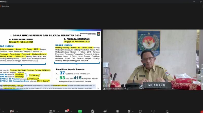 LAMPUNG.GERBANGPATRIOT.COM – Jakarta, Menteri Dalam Negeri (Mendagri) Muhammad Tito Karnavian mendorong pemerintah daerah (Pemda) dan jajaran terkait seperti KPUD, Bawaslu daerah, hingga TNI/Polri se-Provinsi Sumatera Barat (Sumbar) untuk terus berkoordinasi menuntaskan Naskah Perjanjian Hibah Daerah (NPHD). Menurut Mendagri upaya tersebut diperlukan dalam rangka mempersiapkan anggaran Pemilihan Kepala Daerah (Pilkada) Serentak 2024.