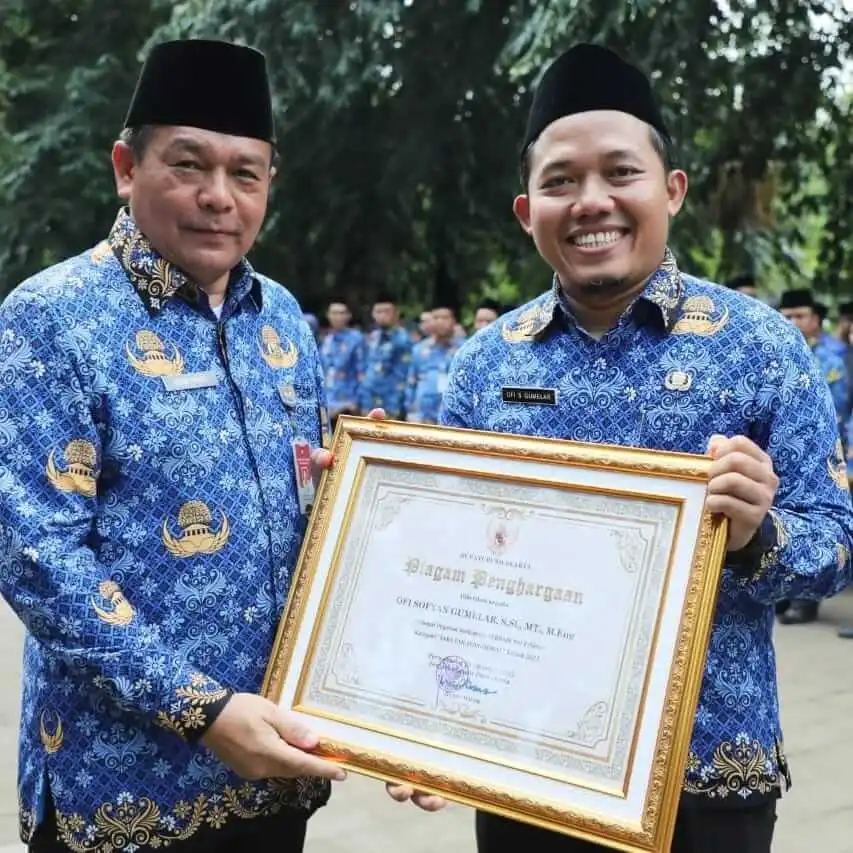 Salah satu pegawai di lingkungan Pemerintah Kabupaten Purwakarta, Jawa Barat yang mendapat penghargaan sebagai PNS Berprestasi dan Teladan kategori pegawai Berkinerja Terbaik ke-1 adalah Ofi Sofyan Gumelar, S.Si.,S.MT.M.Eg.