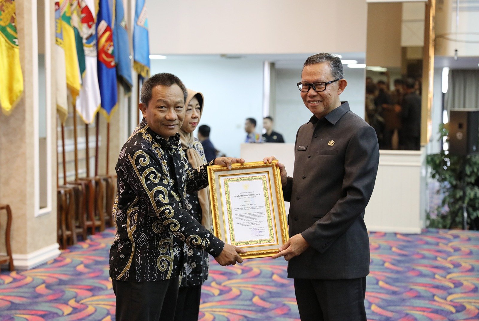 Sekdaprov Fahrizal mengucapkan selamat memasuki masa Purna Bhakti kepada Bapak Kusnardi dan Ibu Ria Andari yang masing-masing telah mengabdi sebagai ASN selama kurang lebih 35 tahun.