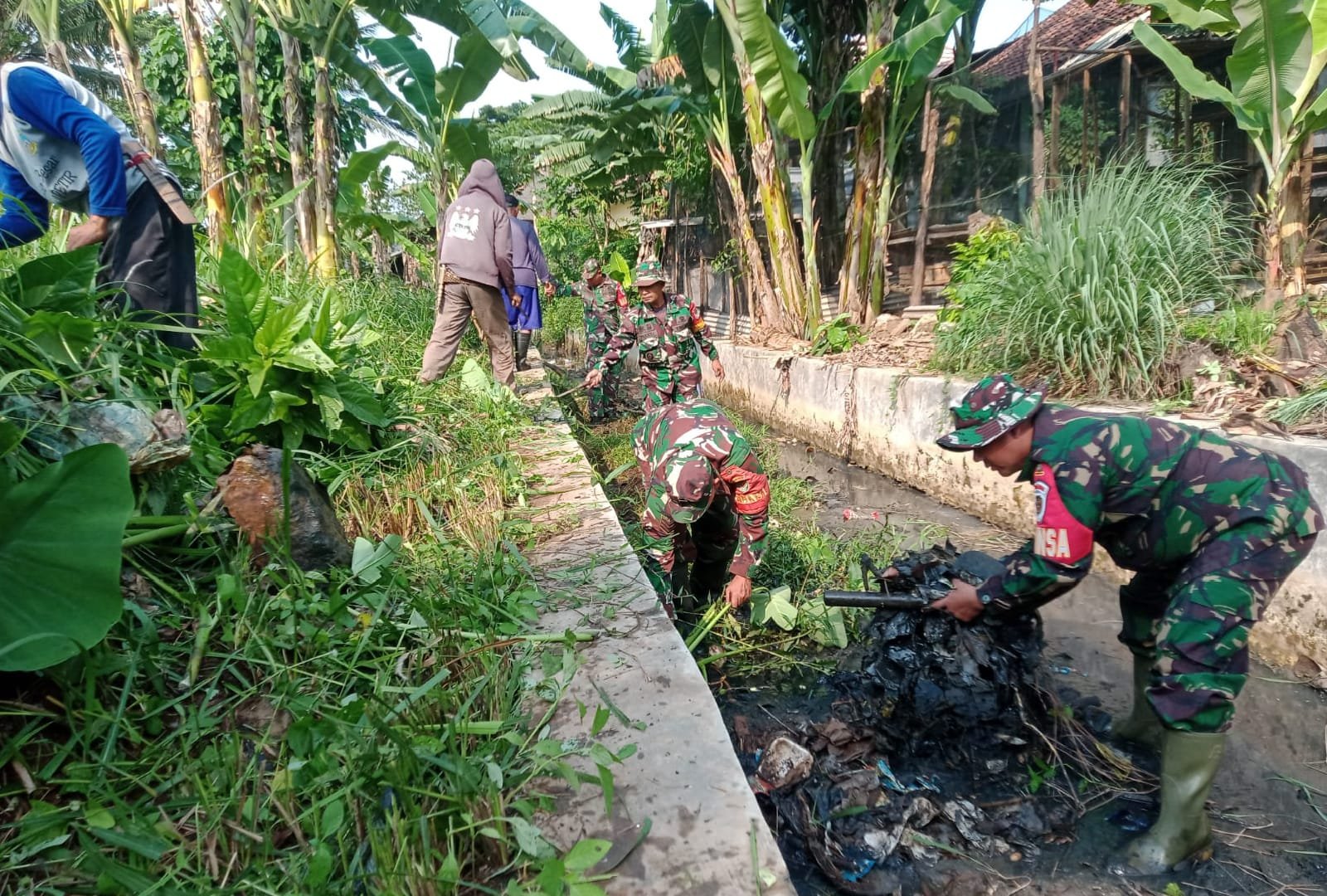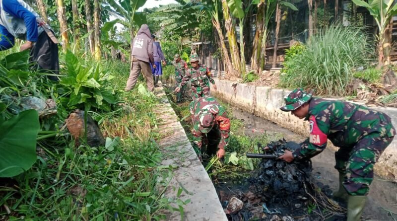 Cegah Banjir, Koramil 0602-08/Petir Bersihkan Saluran Irigasi Dan Lakukan Penghijauan
