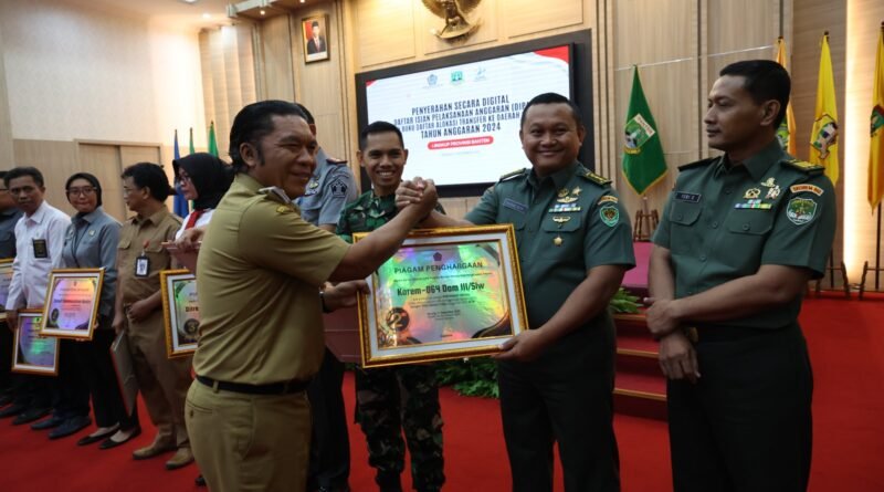 LAMPUNG.GERBANGPATRIOT.COM – Serang, Penjabat (Pj) Gubernur Banten Al Muktabar menyerahkan Daftar Isian Pelaksanaan Anggaran (DIPA) dan Daftar Alokasi Transfer ke Daerah (TKD) Tahun Anggaran (TA) 2024 kepada Pimpinan Instansi Vertikal dan Kepala Daerah di lingkup Provinsi Banten. Penyerahan bertempat di Pendopo Gubernur Banten, KP3B, Kota Serang, Senin (11/12/2023).