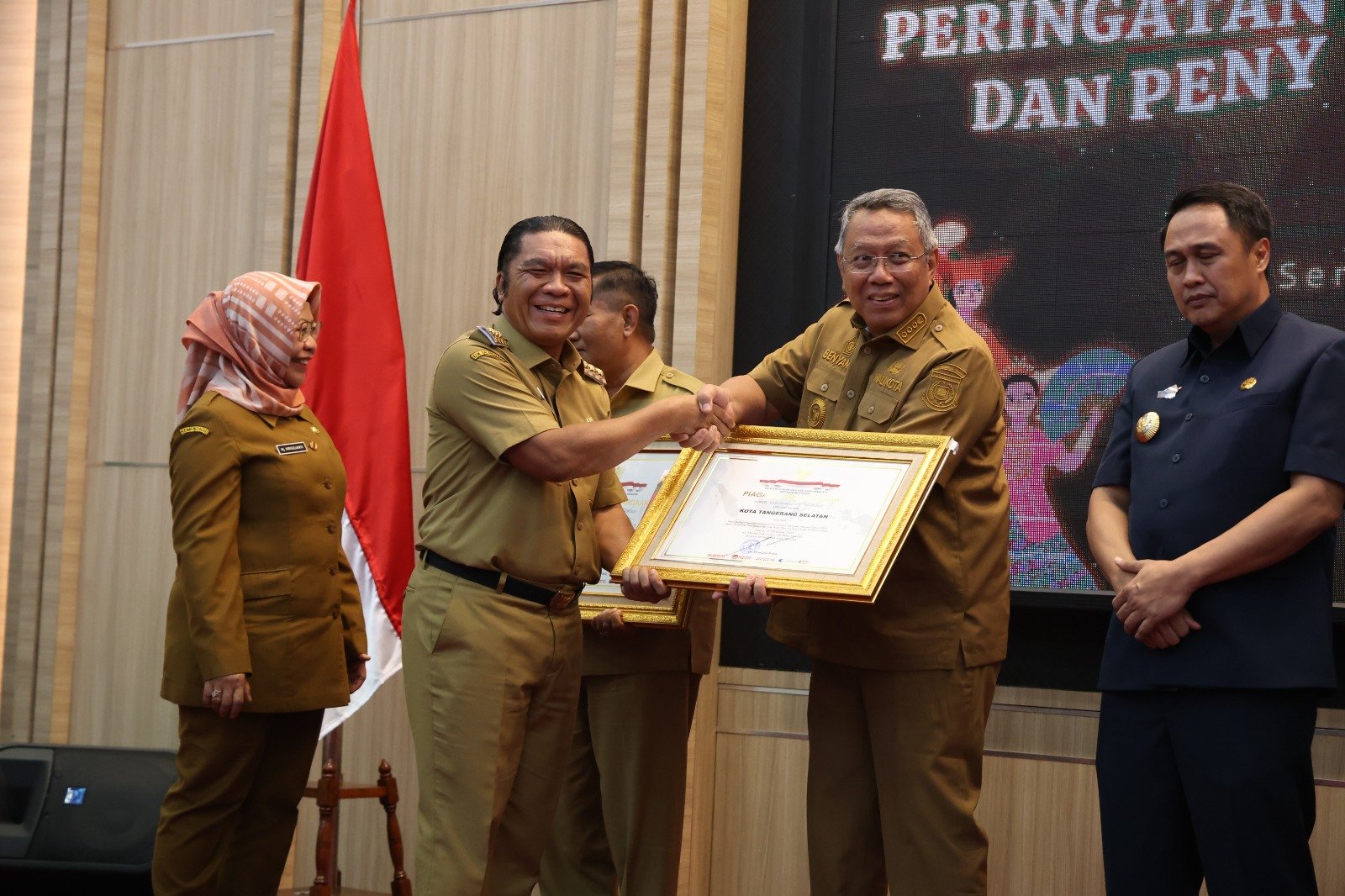 Pj Gubernur Banten Al Muktabar Serahkan Penghargaan Pemerintah Kabupaten/Kota Peduli HAM