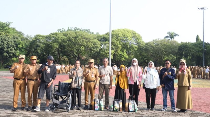 LAMPUNG.GERBANGPATRIOT.COM – Bekasi, Pejabat (Pj.) Wali Kota Bekasi, R. Gani Muhamad didampingi Pj. Ketua TP PKK Kota Bekasi, Yolla Kusuma Gani hadir dalam apel rutin untuk menyerahkan beberapa penghargaan atas peraihan dari beberapa perangkat daerah sekaligus menyerahkan penghargaan dari Pemerintah Kota Bekasi kepada masyarakat, Senin 11/12/2023