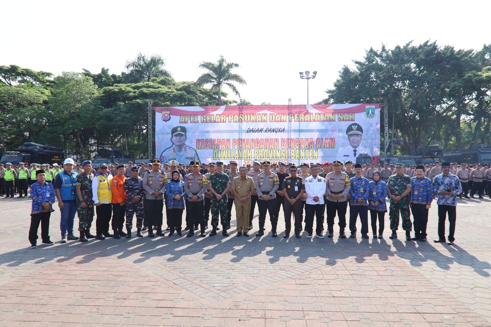 Bertindak selaku pimpinan apel Pj Gubernur Banten Al Muktabar diikuti oleh personel TNI/Polri, Satpol PP, Dinas Perhubungan, Basarnas, BPBD, Tagana, dan PMI tersebut diadakan di Alun-alun Barat Kota Serang pada Selasa (19/12).