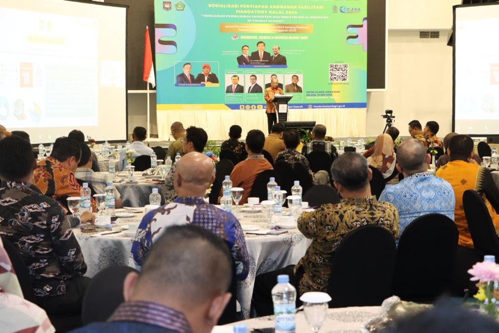 LAMPUNG.GERBANGPATRIOT.COM – Makassar, Kementerian Dalam Negeri (Kemendagri) berkomitmen memperkuat pengembangan program sertifikasi halal di tingkat global bagi Usaha Mikro, Kecil, dan Menengah (UMKM) melalui Anggaran Pendapatan dan Belanja Daerah (APBD). Komitmen tersebut diwujudkan bersama Kementerian Agama (Kemenag) dengan menggelar Sosialisasi Penyiapan Anggaran Fasilitasi Program Mandatory Halal 2024 sesuai Peraturan Menteri Dalam Negeri (Permendagri) Nomor 15 Tahun 2023. Adapun acara tersebut berlangsung secara hybrid dari Hotel Claro, Makassar, Sulawesi Selatan, Selasa (19/12/2023).
