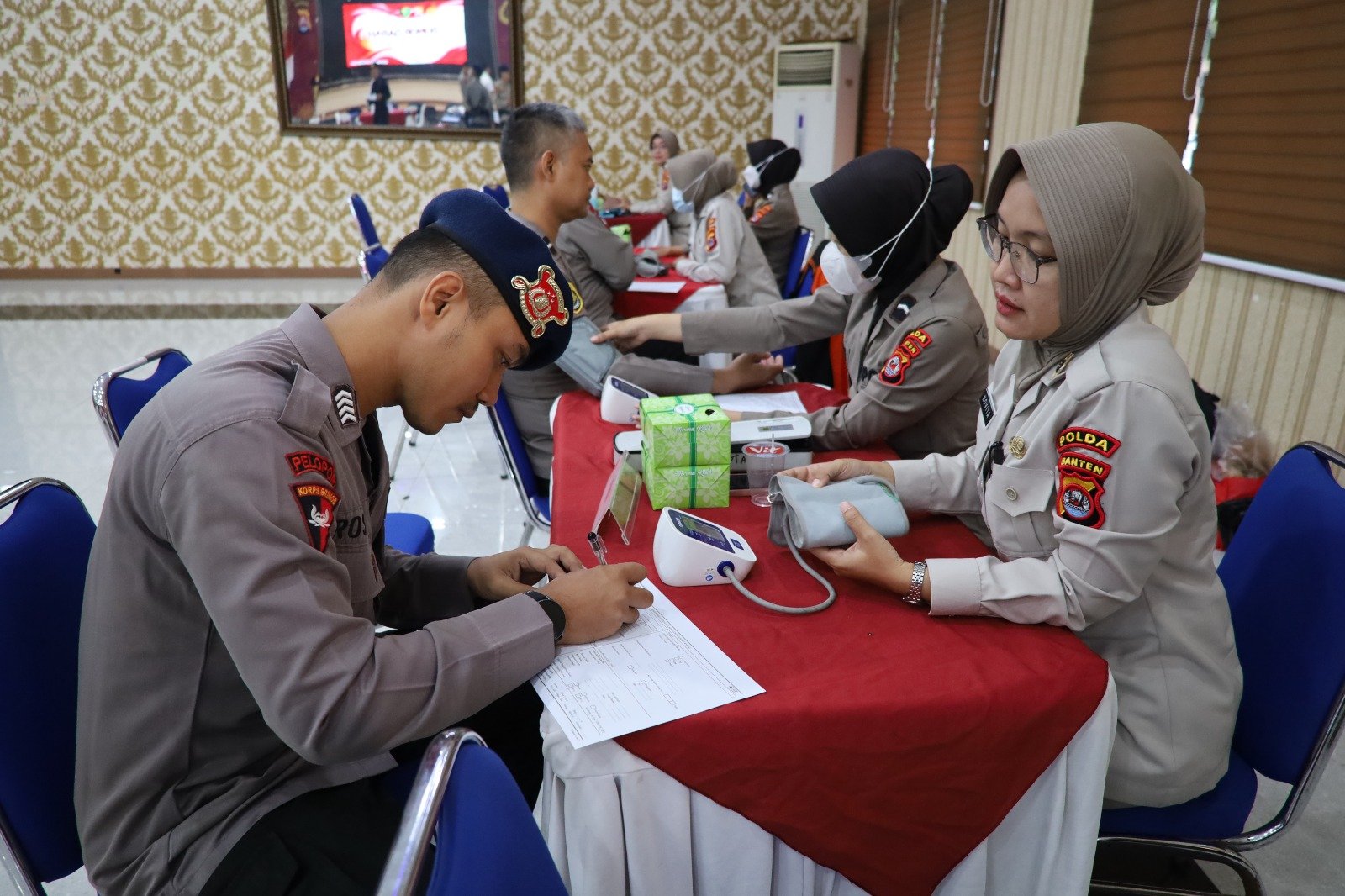 Kegiatan donor darah diikuti Kabid Dokes Polda Banten Kombes Pol Dr Agung Wododo serta didampingi Bebrapa Pejabat Utama Polda Banten serta para Bhyangkari Polda Banten.
