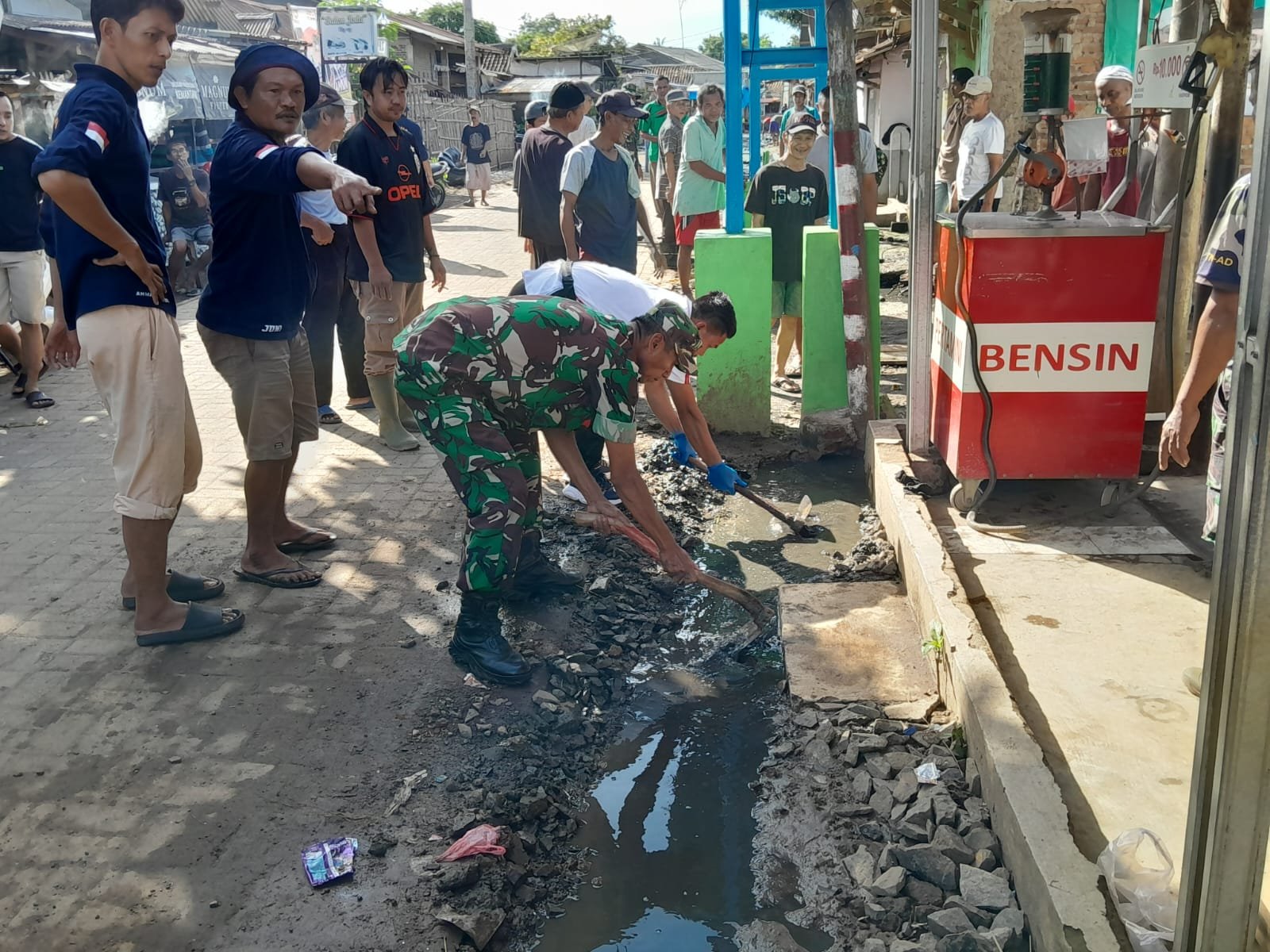 Danramil 0110/Labuan, Pimpin langsung Aksi Peduli Lingkungan Bersihkan Drainase