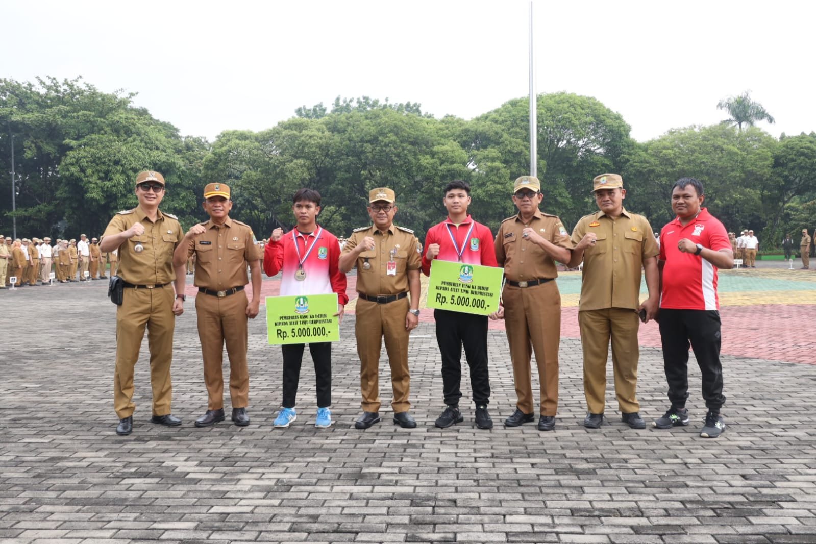 Saat Apel, PJ. Wali Kota Bekasi Serahkan Beberapa Penghargaan Kepada Aparatur dan Atlet Boxing