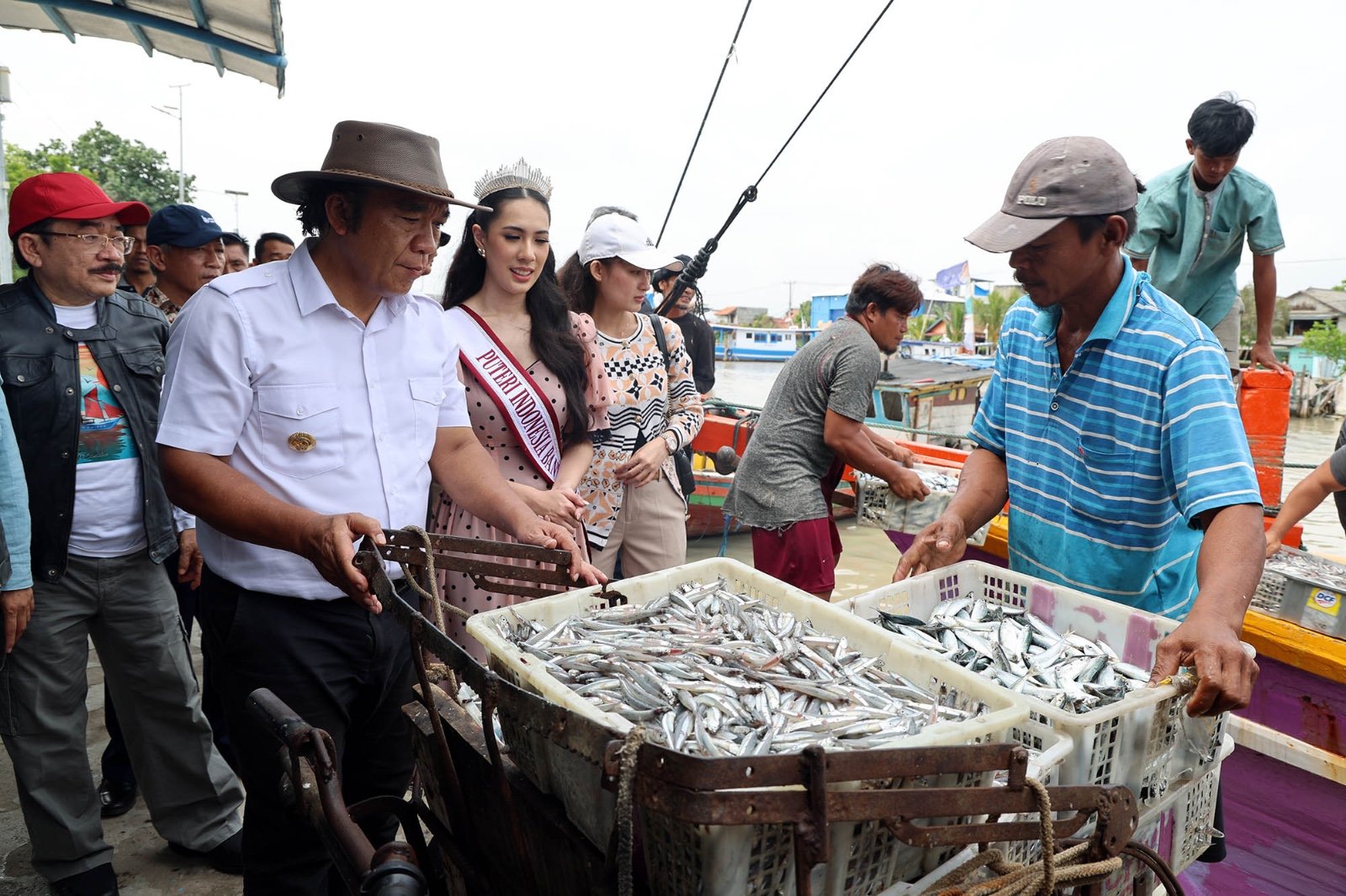 LAMPUNG.GERBANGPATRIOT.COM – Serang, Penjabat Gubernur Banten Al Muktabar bersama Finalis Puteri Indonesia 2024 Banten 2 Latisa Maura mengunjungi Pelabuhan Perikanan Nusantara (PPN) Karangantu, Kota Serang pada Minggu (18/2/2024).